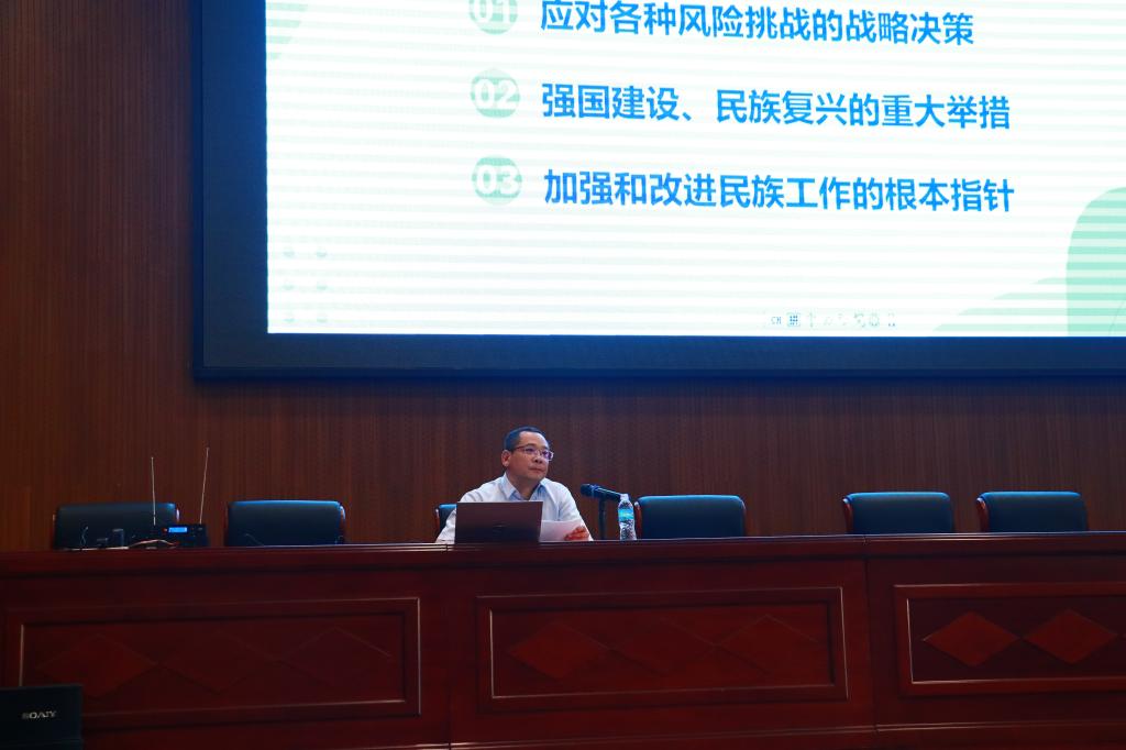 为深入学习贯彻习近平总书记关于思政课建设的重要论述,扎实推进习近平新时代中国特色社会主义思想进课堂进头脑,2024年6月17日晚,公司党委副书记、董事长张玉柱深入思政课课堂,为师生们上了一堂主题为“铸牢中华民族共同体意识”的《形势与政策》课。