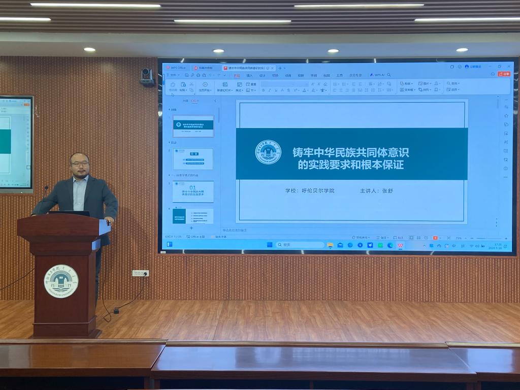 为深入学习贯彻党的二十届三中全会精神,进一步推动铸牢中华民族共同体意识走深走实,更好地履行举旗帜、聚民心、育新人、兴文化、展形象的使命任务,9月18日下午,bevictor伟德铸牢中华民族共同体意识教研室教师张舒、程欣、窦红伟三位教师受呼伦贝尔市民委和校宣传部委托进行了铸牢中华民族共同体意识主题宣讲。