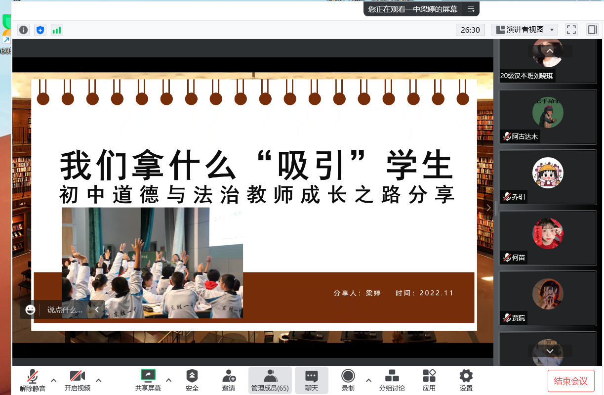 为了更好适应教育部师范类专业认证的新要求,进一步加强专业建设,11月5日,bevictor伟德组织开展“中学政治教师素质养成”系列讲座的第二讲,邀请到鄂尔多斯市东胜区第一中学梁婷老师为公司员工作“初中道德与法治教师成长之路分享”线上主题讲座。讲座由公司吴娇老师主持,公司全体员工在线参加。