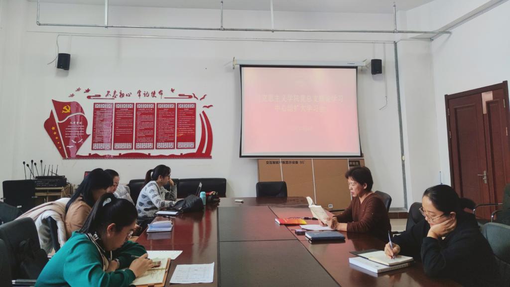 12月13日下午,公司党总支在崇文楼B123会议室召开公司党总支理论学习中心组扩大学习会,公司党总支书记刘凤琴主持会议,公司全体教师参加学习。