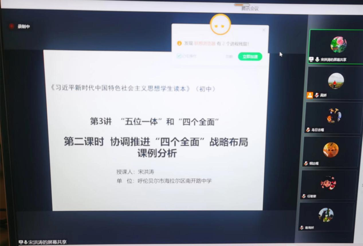 讲座中,宋洪涛老师针对读本的重难点,结合初中的教学特点从读本内容、学情概况、教学目标、教学重难点及教学过程几个方面进行了全面的讲解。讲座结束后,宋洪涛老师针对初中教学中常见问题与员工进行了互动交流。在线的200余名员工也对初中思政课教学中的问题、难点和疑惑向宋洪涛老师进行了提问,教研活动在轻松愉悦的氛围中结束。