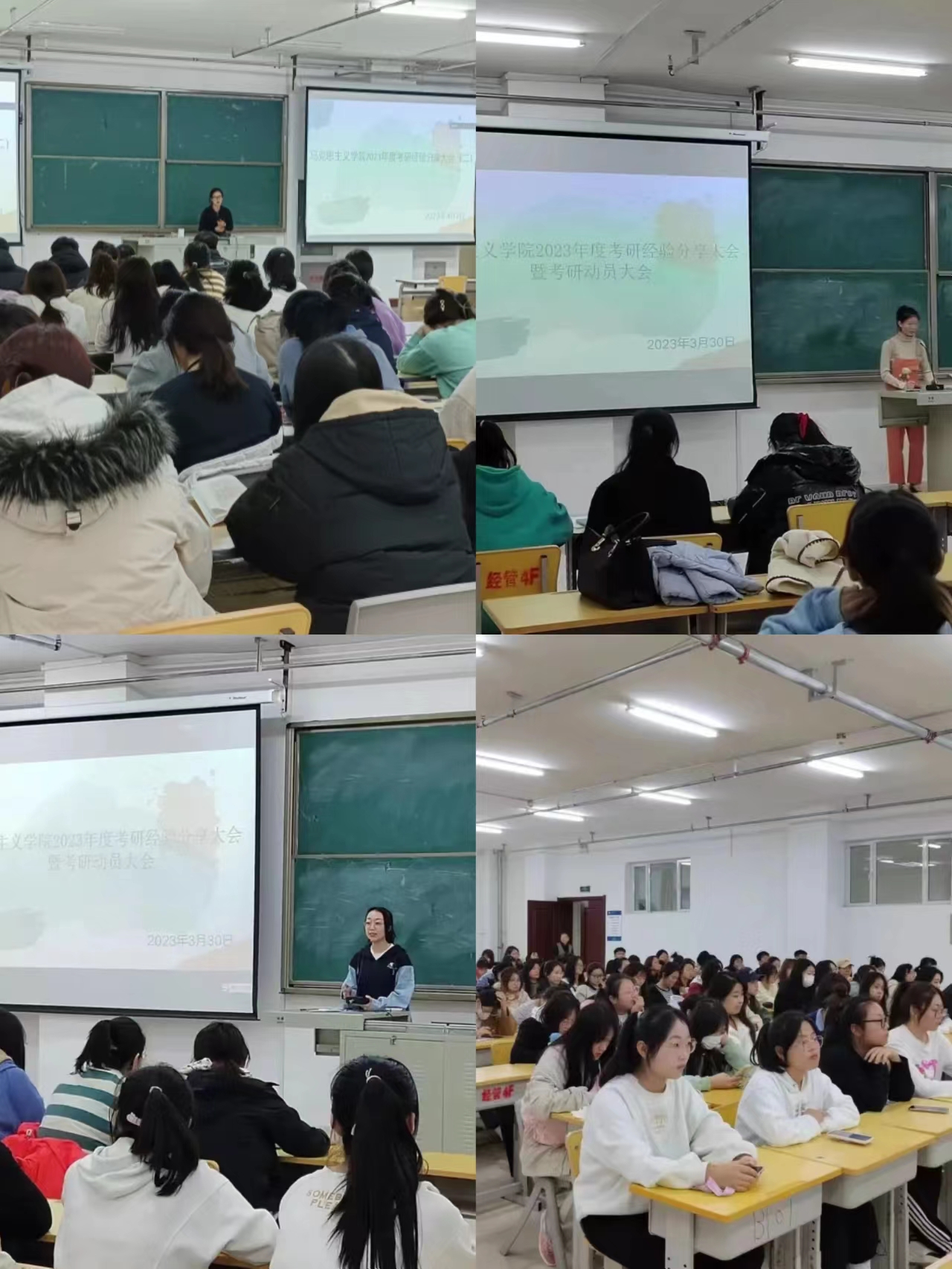 会上,优秀学子结合自身考研经历,围绕择校、专业选择、备考阶段的各专业课知识点、复习时间分配以及心态调整等方面向大家做了详细介绍并就复习方法、应试技巧等同学们普遍关心的问题进行了细致耐心的分享。会议最后两位老师结合长期以来老师辅导考研的经验和技巧,为同学们分析考研现状,指明考研方向。