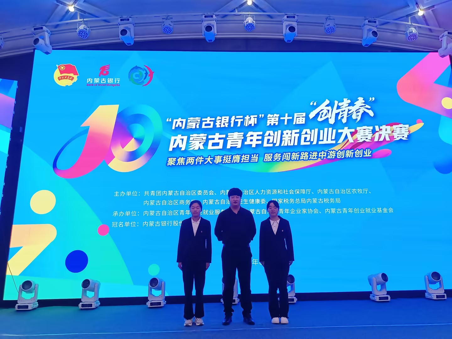 6月22日,自治区团委联合人力资源和社会保障厅、农牧厅、商务厅、卫健委、税务局以“聚焦两件大事挺膺担当,服务闯新路进中游创新创业”为主题,在呼和浩特市举办“内蒙古银行杯”第十届“创青春”内蒙古青年创新创业大赛决赛。公司由田震老师带队,金振华、马文洋两名同学参加。