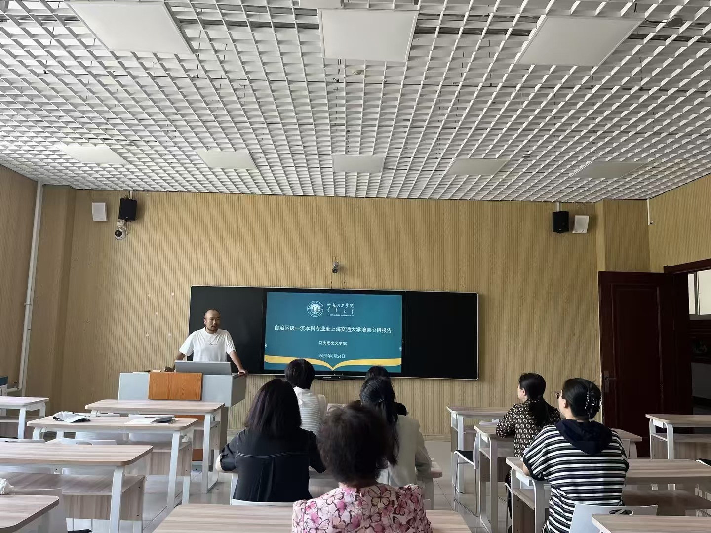 6月24日,bevictor伟德举行自治区级一流本科专业赴上海交通大学培训经验交流活动,中国近现代史纲要教研室主任张舒老师重点围绕三个方面介绍了本次培训的心得体会。