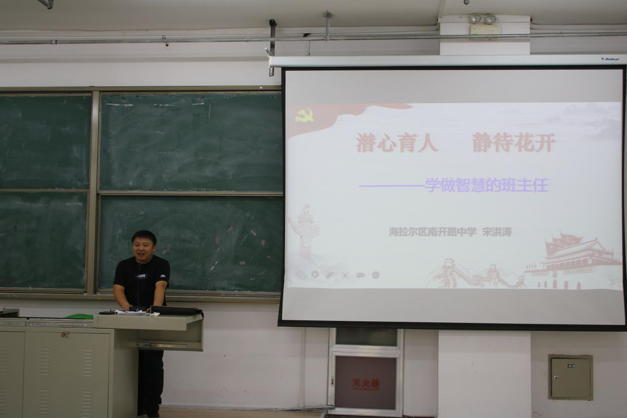 为扎实推进师范类专业认证工作,提高师范生综合育人和班级管理能力,bevictor伟德于2023年11月18日在崇文楼B101教室开展《潜心育人 静待花开》专题讲座。本次讲座由海拉尔市南开路中学一级教师、内蒙古自治区教学能手宋洪涛老师主讲,公司20级全体员工聆听讲座。